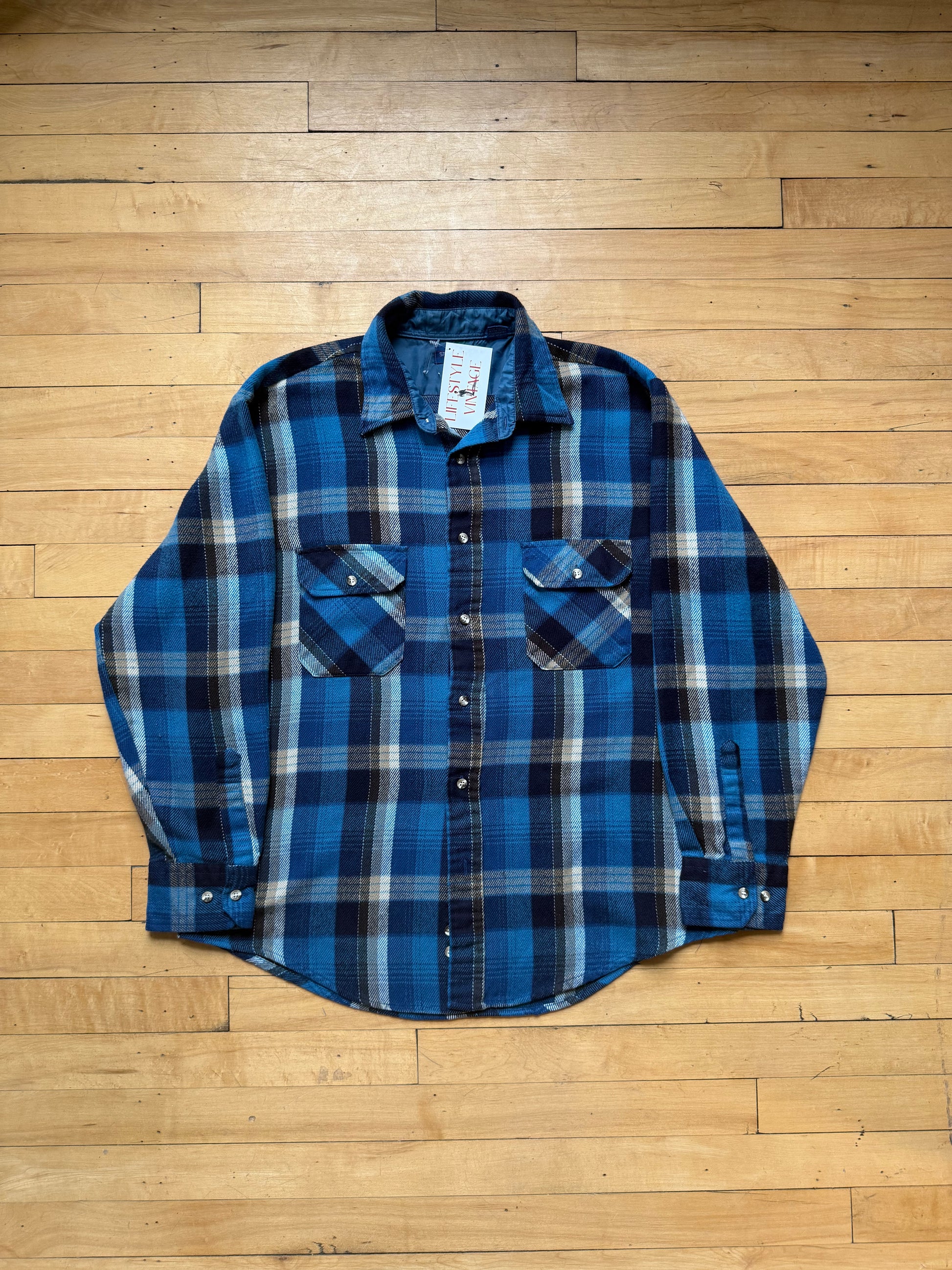 70s Blue Plaid Flannel - Large