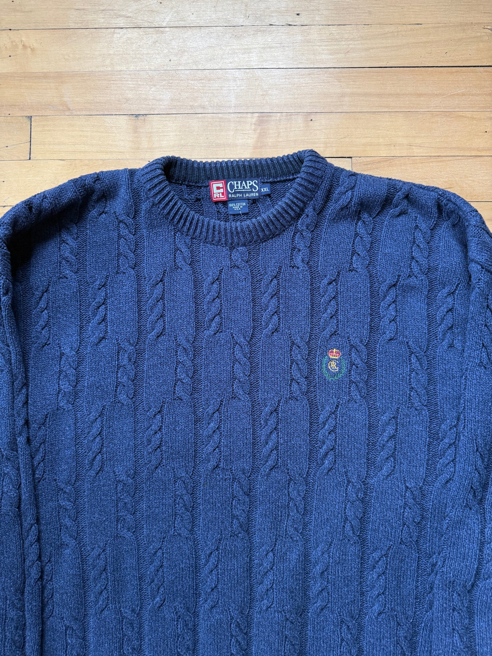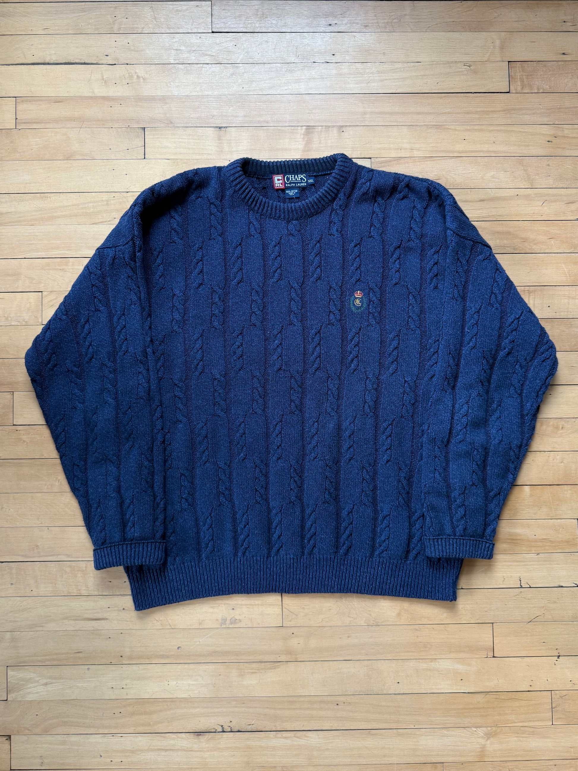 90s Chaps Ralph Lauren Blue Cable Knit Sweater - XXL
