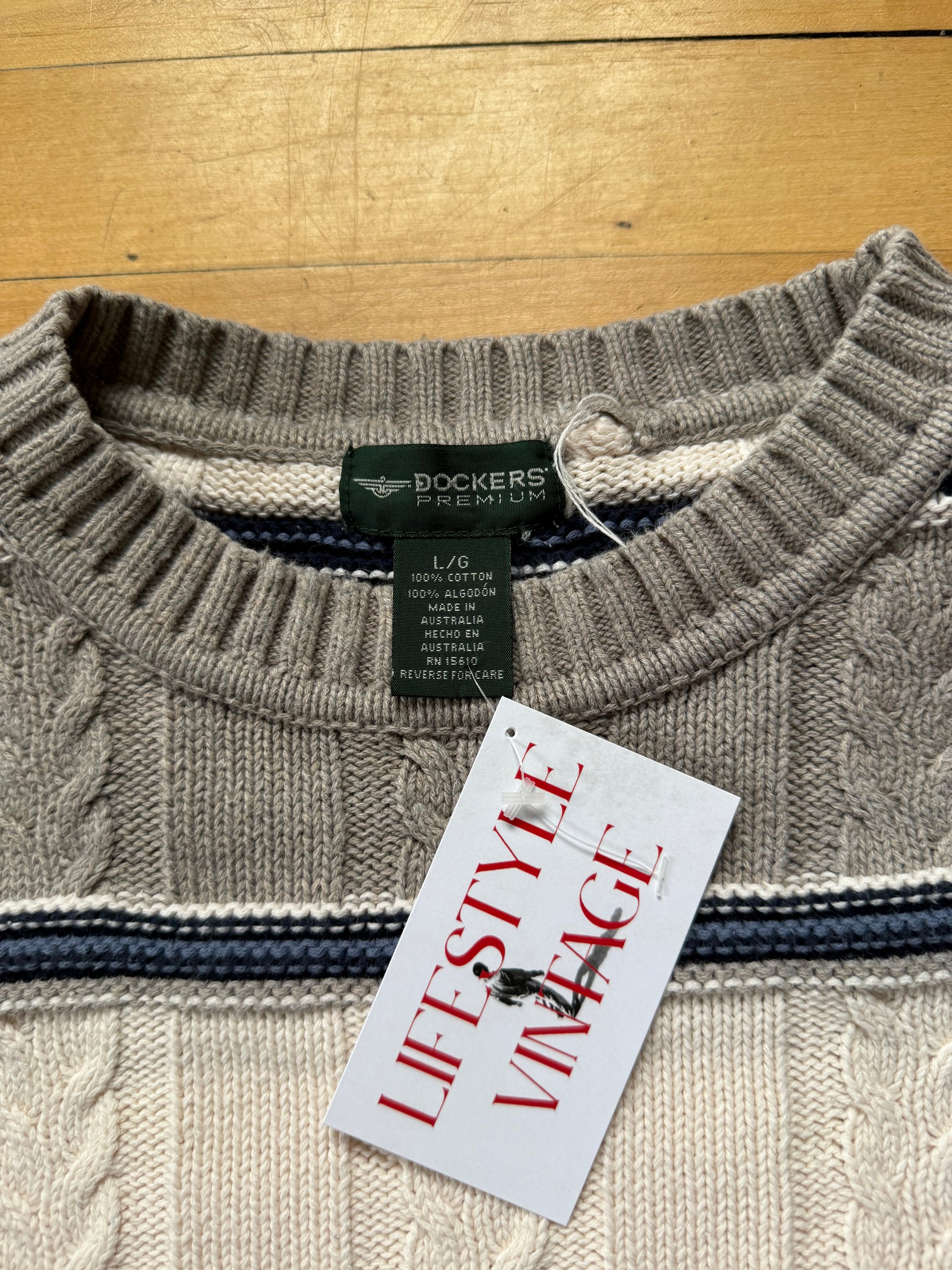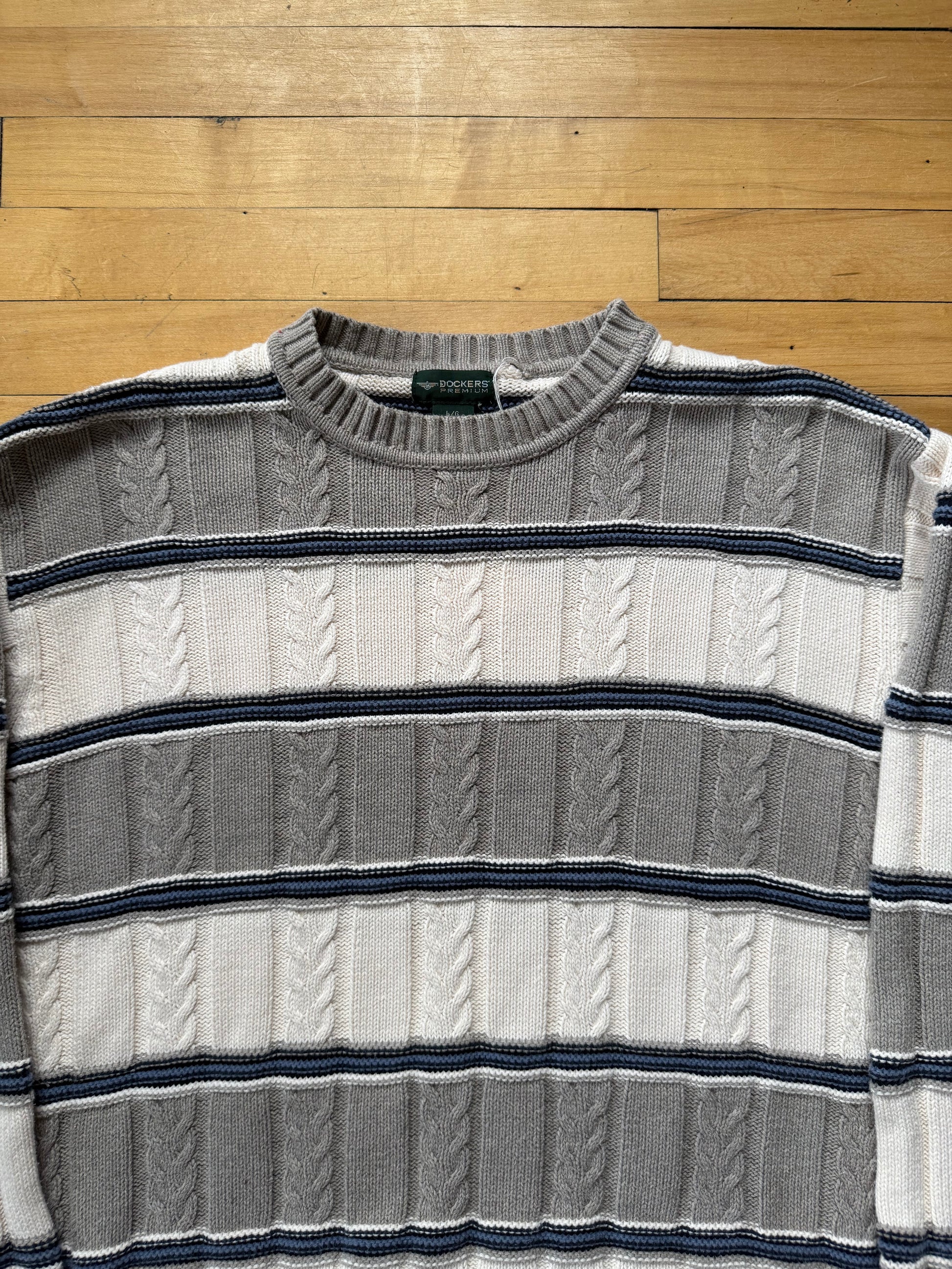 90s Dockers Gray & Blue Striped Sweater - Large