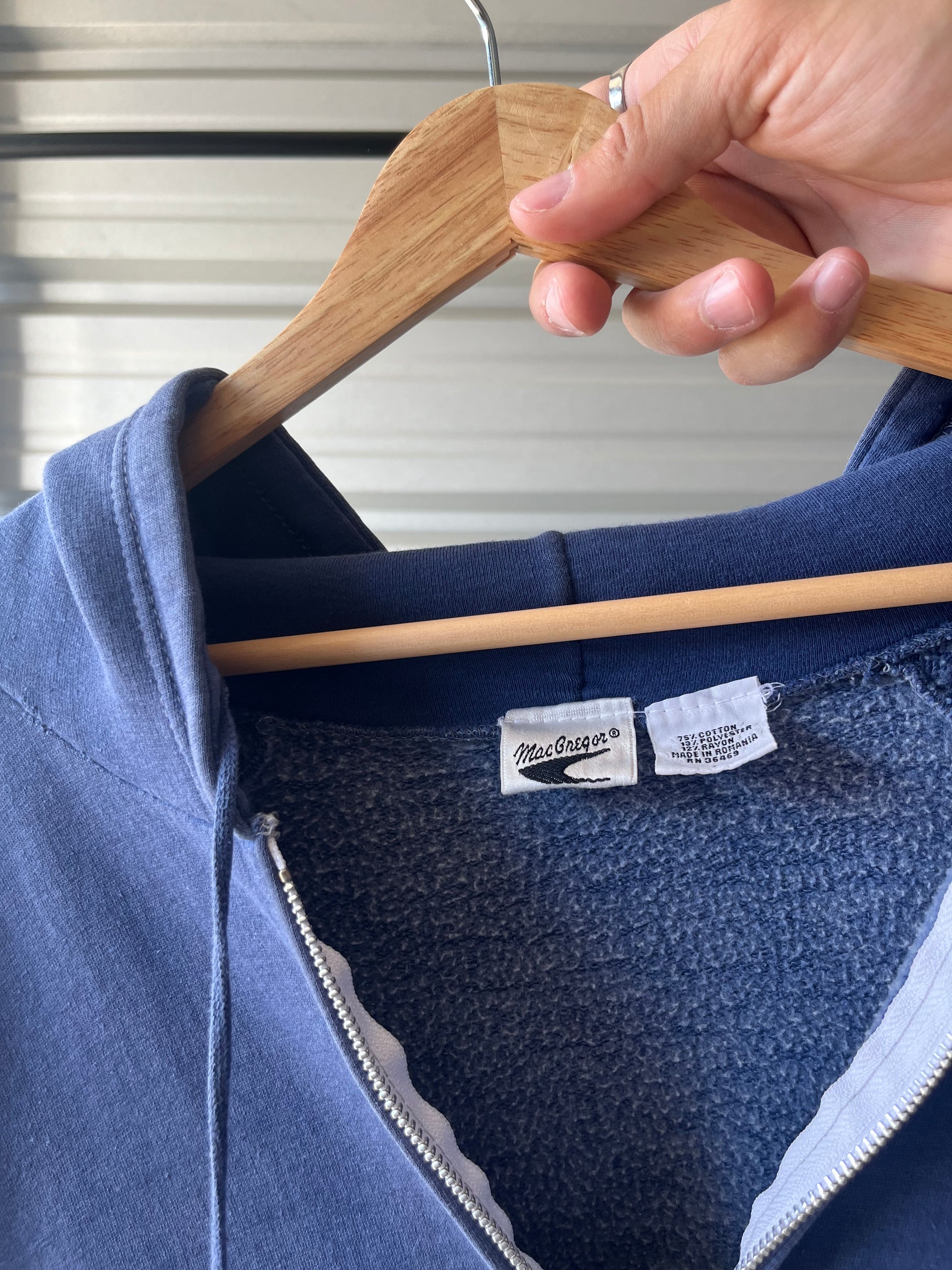 Vintage Faded Blue Zip Hoodie - Large