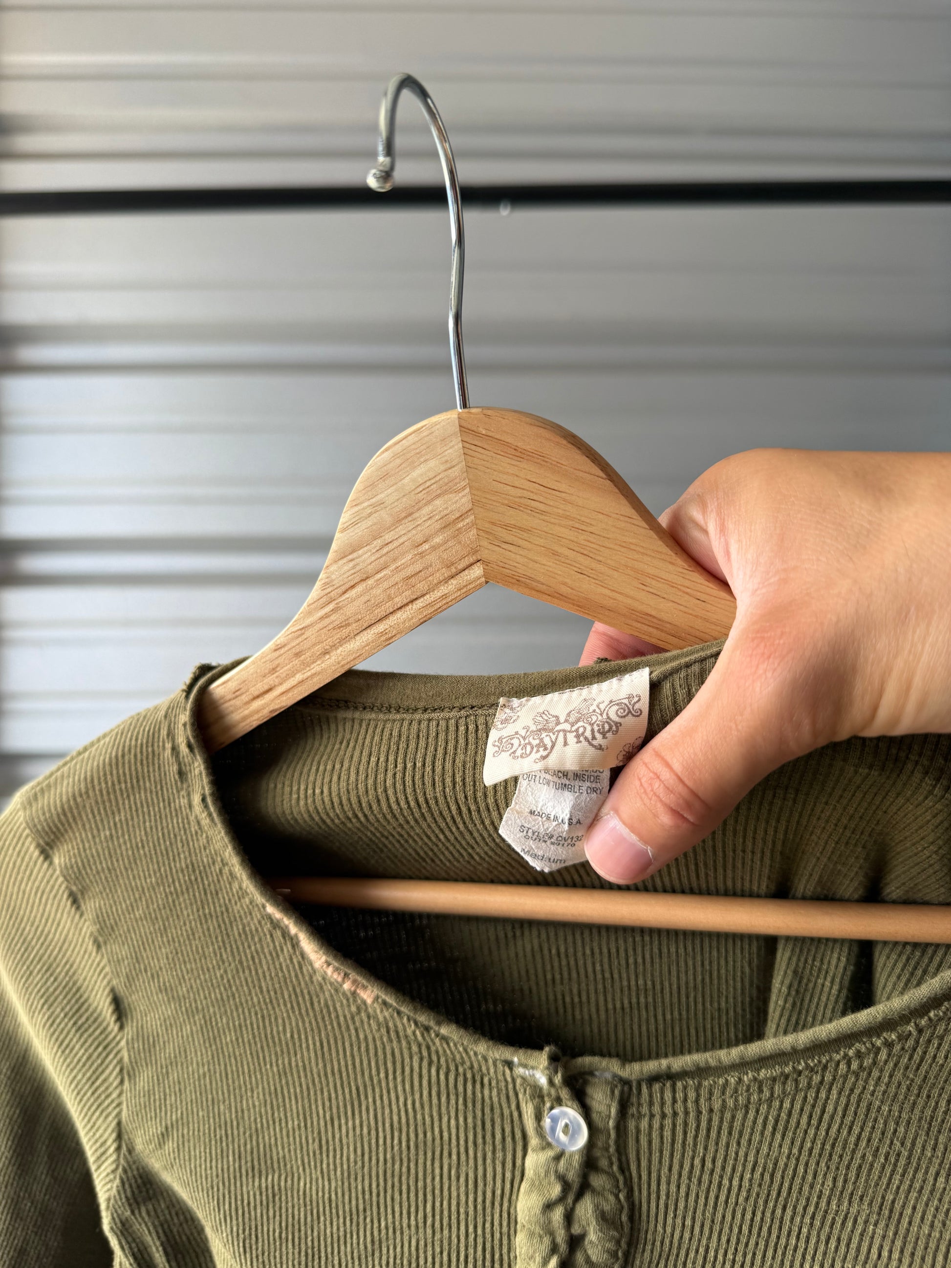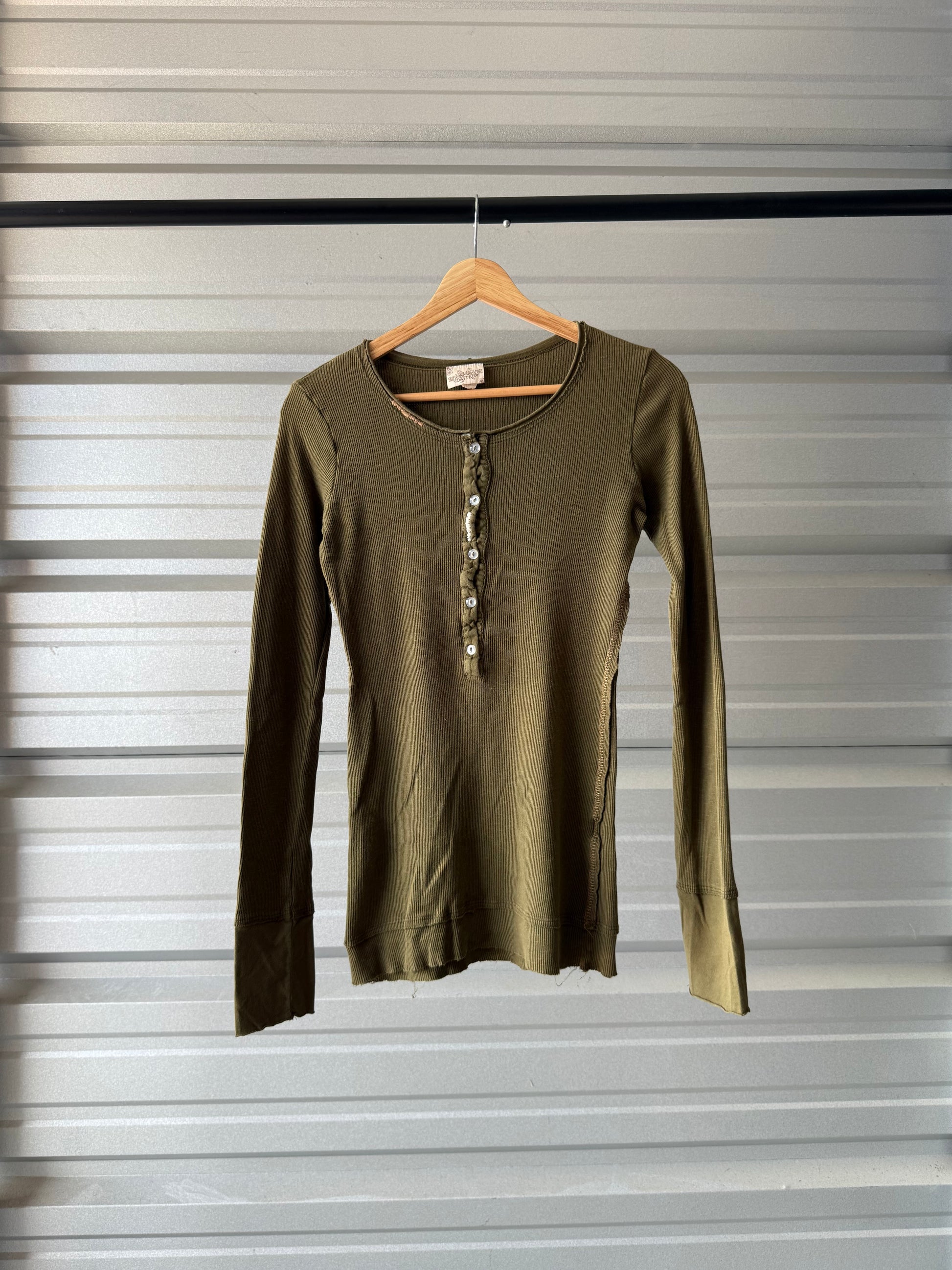 Vintage Green Henley Thermal Shirt - Medium