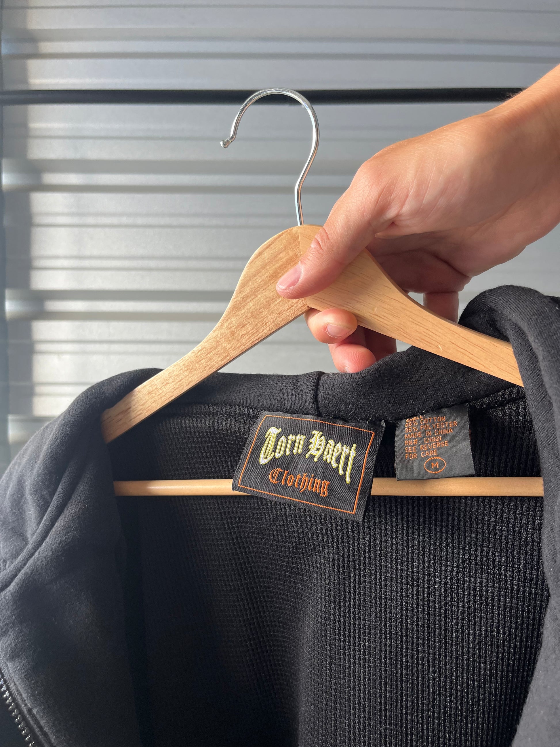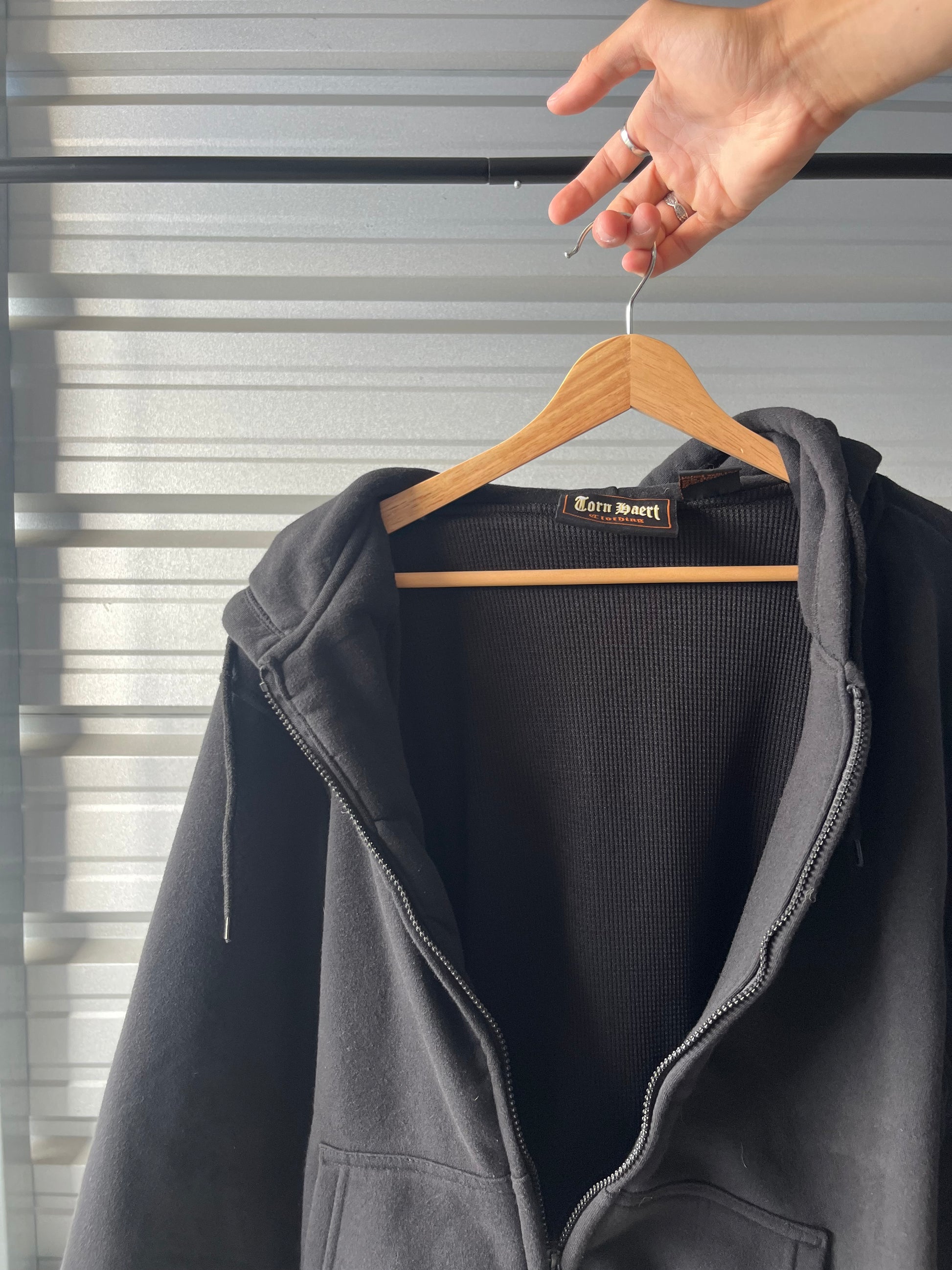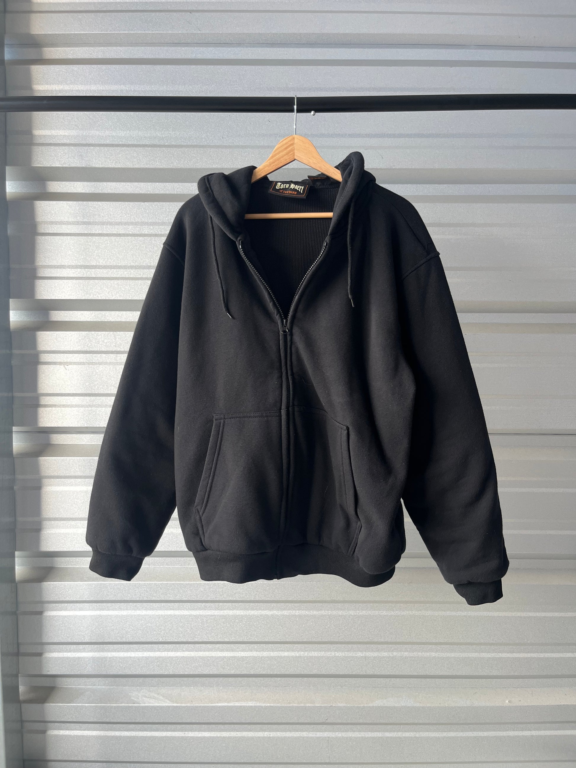 Vintage Thermal Lined Black Zip Hoodie - Large